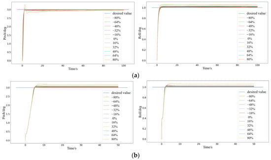 Finally, state 4 similarly shows the pitch angle response over time in Figure 7d for the verification of pitch angle.