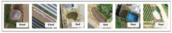 - Kim, N.K.; Park, M.S.; Jeong, M.J.; Hwang, D.H.; Yoon, H.J. A study on field compost detection by using unmanned aerial vehicle image and semantic segmentation technique based deep learning. Korean J. Remote Sens. 2021, 37, 367–378. [Google Scholar] [CrossRef]