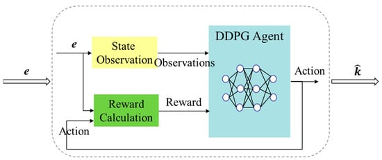 Inspired by the combination of reinforcement learning algorithms and traditional control methodologies, a reinforcement learning agent based on DDPG is trained to adaptively adjust the switching control gain. The trained agent is applied as a parameter regulator for the designed SMC, and the block diagram of this designed DDPG-SMC is shown in Figure 3.