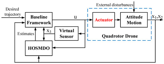 In this section, a novel feedback control framework based on HOSMDO for the attitude tracking of system (12) is presented as shown in Figure 2.