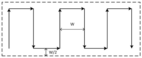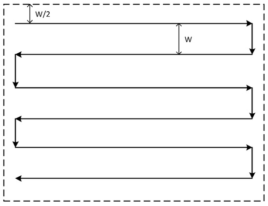 where V is the speed of the drone; T is the effective search time (excluding turning and other search time unrelated to effective search); and W is the sweep width. For a parallel search, the calculation of the coverage factor is relatively simple, equal to the sweep width W divided by the search line spacing S: