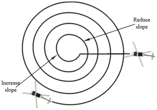 The spiral search method generally uses a 20° slope to spiral, and when the spiral approaches 360°, it switches to a 15° slope; then, it spirals in turn at 10° and 5° slopes, approaching 360°, as shown in Figure 7.