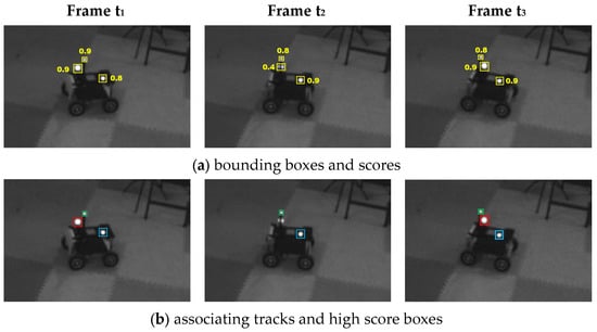 Predominantly, the methods employed in MOT comply with a principle known as the “tracking by detection” paradigm [36,39,40]. These approaches typically execute object detection on every single frame of a video sequence and then convert the task into object association between adjacent frames. Simple Online and Real-time Tracking (SORT) [39] utilized the Kalman filter [41] and Hungarian Algorithm [42] for object association. Because SORT disregards the appearance characteristics of detected objects, it performs well only when the certainty of object state estimation is high. Wojke et al. [36] introduced cosine similarity as appearance similarity for tracking association. As a result, this method can track through longer periods of occlusion but struggles with challenges like motion blur. MOT approaches based on joint detection and embedding [43,44,45] allow sharing detection and embedding information in the model, and cross-scale association is feasible. Previous studies [46,47] represent pioneering efforts in applying Transformer to MOT, achieving notable improvements in tracking accuracy. However, they encounter significant challenges in addressing computational bottlenecks during deployment. Meanwhile, Chu et al. [48] introduced a cascade association framework to handle challenging tracking scenarios, thereby improving calculation efficiency. Zeng et al. [49] developed Transformer-based frameworks for MOT, enabling end-to-end tracking, but its performance in detecting newborn objects is limited.
