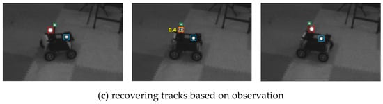 As shown in Algorithm 2, for the matching of object detections and trajectories, the number of trajectories is constrained to be consistent with the number of IDs and markers. For example, if target markers are used, the IDs can only be 1, 2, …,. Additionally, when there are gaps in trajectory IDs, a new trajectory is established for targets that are successfully detected in three successive frames. Markers that are not updated temporarily do not participate in subsequent trajectory calculations until the next update.