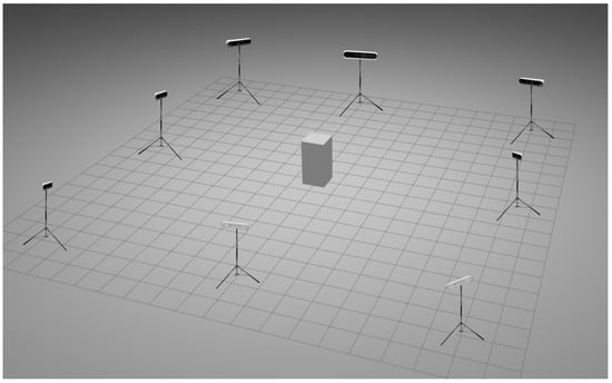 To reconstruct 3D positions using multi-view cameras, it is essential to rectify distortions produced by the camera lens and establish a geometric model for multiple cameras to denote their relative positions. The primary goal of calibration is to obtain both the intrinsic and extrinsic parameters of the cameras. The methodology adopted in this experiment is based on Zhang’s camera calibration method [62]. The camera calibration yields intrinsic and extrinsic parameters, allowing us to establish a camera model. This means we can find the relationship between the spatial points’ 3D coordinates and the camera image coordinates.