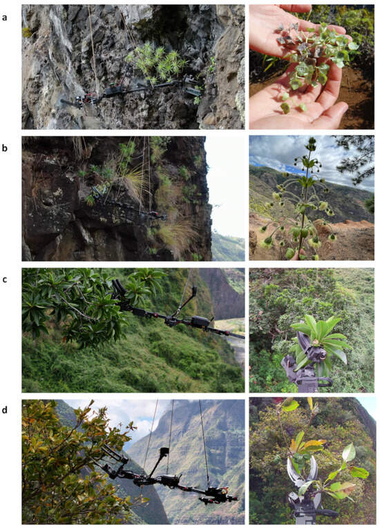 Cliff habitats remain extremely difficult to access by conservation scientists. These unique habitats are home to flora and fauna that have been little studied over the years due to the difficulty of accessing them safely. Still, many conservation efforts are being made in these habitats since it is an environment that is minimally disturbed by invasive species and home to many rare endemic species. Many invasive species have a detrimental effect on the flora of Kaua’i in the Hawaiian archipelago where 97% of endemic species are now considered endangered, critically endangered, or extinct. On the island of Kaua’i for example, many organizations such as the National Tropical Botanical Garden (NTBG), the Plant Extinction Prevention Program (PEPP), and the State’s Division of Forestry and Wildlife of Hawai’i have been studying this habitat for some time using drone imagery, abseiling, climbing, etc. Despite their recent successes in the rediscovery of supposedly extinct plant species [1] and the discovery of new plant populations [2,3], the difficulties encountered by scientists to physically reach these plants is a barrier to conservation work. Indeed, the ultimate objective would be to perform a complete conservation cycle including the localization of the species of interest, the collection of propagating material (cuttings, flowers, seeds), the cultivation in specialized nurseries, and the reintroduction in their natural habitat. At the moment, the collection and propagation steps still represent major challenges on most cliff environments with the methods and the tools at their disposal.