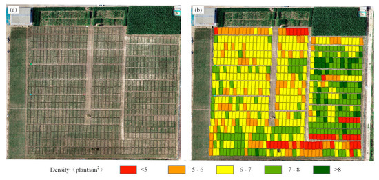 Results of the planting density estimation accuracies for the (a) maize planting densities and (b) maize planting density distribution.