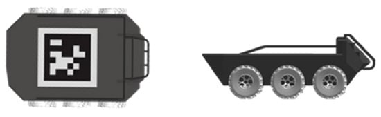 Each wheel is independent and independently driven so that each wheel can be controlled. The six driving wheels are not steering wheels; turns are made by changing the rotational speeds of the six wheels, and cornering radii vary depending on the rotational speed of the drive wheels and the indices of adhesion to the ground, the slip indices. The six-wheel UGV is shown in Figure 4.