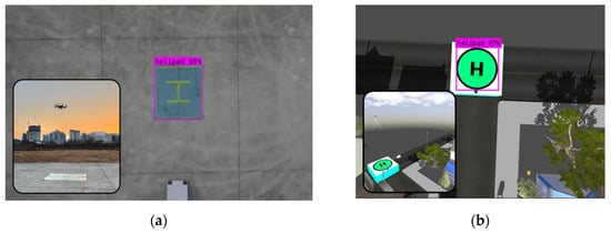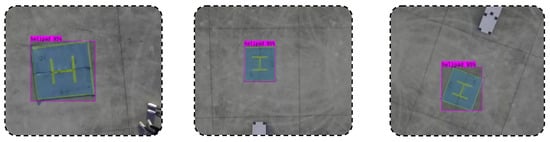Likewise, another landing pad under consideration for utilization and evaluation is the H-type helipad. As expounded upon in Section 3, the deep learning model that was trained has been seamlessly integrated into our detection package. It has undergone real-time testing to identify the helipads and estimate their poses. As illustrated in Figure 27, the model exhibits a robust ability to detect the helipad with a high class probability, underscoring its viability for effective pose estimation.