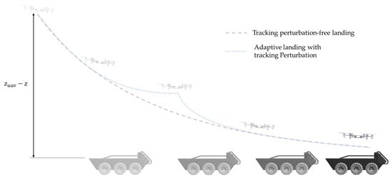 Effect of offsetting from tracking on landing process. The proposed adaptive landing strategy slows down the descending speed when the UAV is offset from tracking UGV precisely.