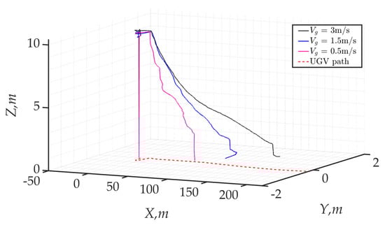 Velocity result for straight line tracking and landing at different speeds of UGV .
