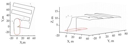 As depicted in Figure 22, a test plan with multiple phases—mission flight (A), midflight fault injection (B), recovery (C), tracking (D), and emergency landing with degraded control (E)—was devised and implemented using our proposed framework to address such challenges. Initially, the UAV was assigned a survey mission at 10 m and during its mission flight, a fault was injected to disable one of its actuators. This triggered the recovery phase, allowing the UAV to regain control. Once control was reestablished, the UAV initiated a search for a landing option by activating the camera and detection module. The event location was communicated to the UGV, which then planned a path passing through the UAV’s current approximate location.