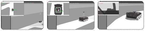 As the UGV approached the event location, it became visible to the UAV’s vision system, prompting the initiation of the UAV tracking module to receive the UGV’s estimated pose. The tracking algorithm guided the UAV to follow the UGV, and upon precise tracking, the UAV landed on the UGV, as illustrated in Figure 23, showcasing the sequential landing process with precise tracking. Subsequently, the UGV carried the UAV back home. A simulation video of the entire scenario is available in Supplementary Material S1.
