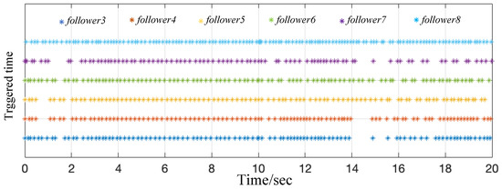 Then, utilizing the distributed velocity (15) with the event-triggered mechanism (14) for the follower UAV and the parameters event-trigger parameter satisfies.