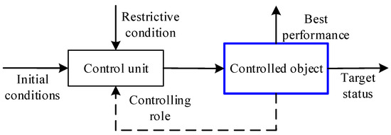 Optimal control is essentially a variational problem, and the most commonly used methods are the extreme value principle and dynamic programming. As shown in Figure 4, the optimal control problem is the determination of a control law for a given system so that the system can have the optimal value under the specified performance index under the given conditions. When the AAID is hovering, the system can be regarded as a linear system. According to the optimal control principle, the quadratic function of the state and control variables is selected as the optimal performance index, which enables the control of the AAID in the hovering state. It is assumed that the optimal control performance index function of the linear time-varying quadratic system is