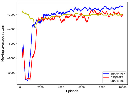 To further emphasize the merits of the proposed SNARM-PER technique in path planning, a comparative analysis is conducted with other approaches such as SNARM-RER [27] and D3QN-PER [34].