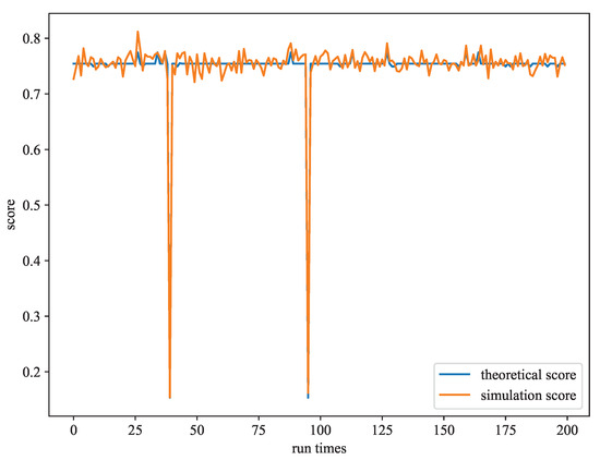 y axis indicates the score calculated by the reward and score from the simulation. From the graph, it can be observed that the two types of scores often have similar values. When the agent’s simulation score decreases, the agent’s theoretical score also exhibits a corresponding decline. Regarding the two significant drops in the agent’s scores, they occur because the agent is still running in exploration mode, meaning that during each run, there is still a certain probability of executing suboptimal actions. In practical applications, this issue can be avoided by setting the agent to a deterministic mode.