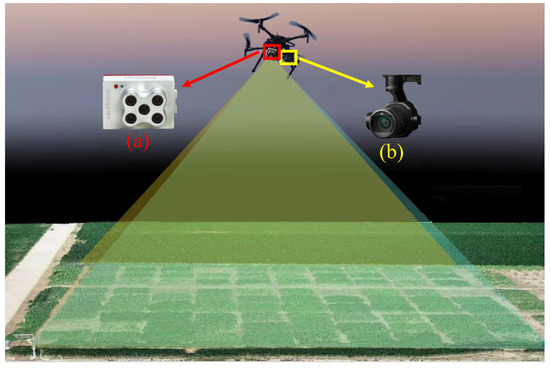 UAV observation platform and two sensors: (a) MS sensor; (b) RGB sensor.