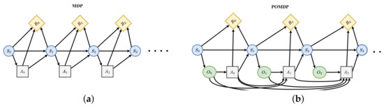 ). In a POMDP, the agent cannot directly observe the underlying state. An illustration of the MDP and POMDP as dynamic decision networks are shown in