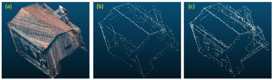 Comparison of contour points extraction by different methods, (a) Original UAV building point cloud, (b) FSL method [31], (c) Proposed method.