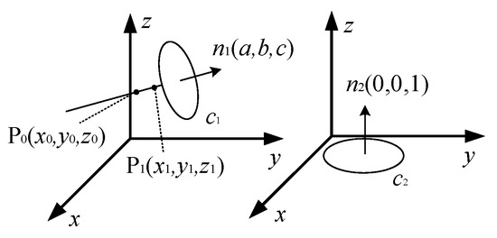 By rotating the matrix , the normal vector can be rotated to . The inverse matrix of this rotation matrix can be used to rotate the parameter equation of to the direction of . The parameter equation in the direction of is shown in Formula (14).