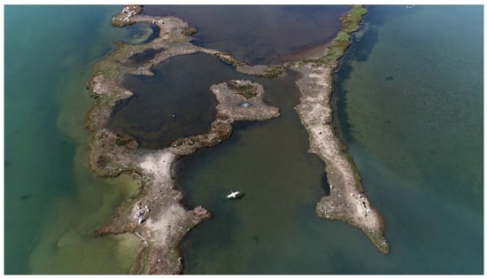 In the realm of ornithological research, the utilization of UAVs holds immense potential for tracking and studying bird species in their natural environments [1,4]. When UAVs are coupled with automated computer vision methods, particularly those based on deep learning architectures, researchers can automate the identification and tracking of bird species in drone-captured footage, thereby overcoming the limitations of traditional manual tracking methods and eliminating the dangers of physical monitoring or the limitations of using a telescope. Figure 1 depicts an image retrieved above an islet at a safe altitude and containing wild birds.