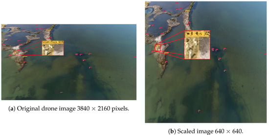 Original drone image image scaled from 3840 × 2160 pixels down to 640 × 640 pixels.