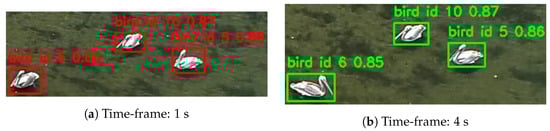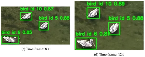 Figure 9 displays three tracked objects in four different timelines of a video. With the application of advanced object-detection techniques alongside tracking methods, we can observe how those models were capable of consistently maintaining the same track IDs for the same objects over extended periods of time.