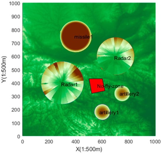 | Threat Type | Position Coordinate | Threat Radius (Unit: 0.5 km) |