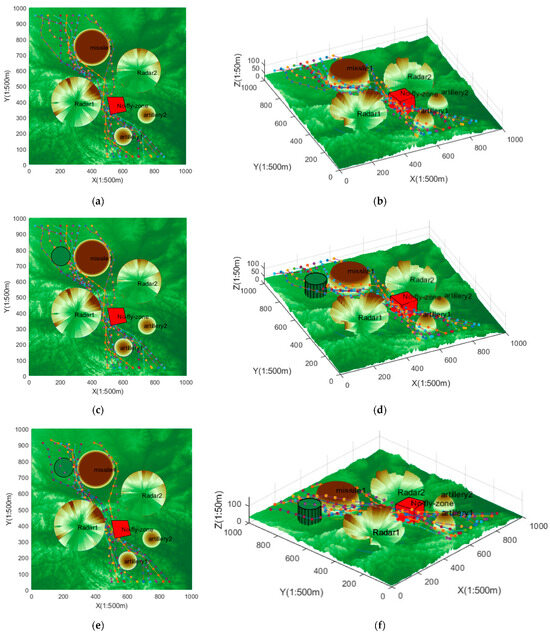 - Zhang, Z.; Wu, J.; Dai, J.; He, C. A novel real-time penetration path planning algorithm for stealth UAV in 3D complex dynamic environment. IEEE Access 2020, 8, 122757–122771. [Google Scholar] [CrossRef]