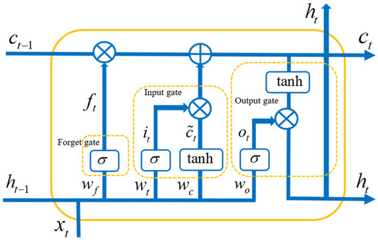 The LSTM network is improved from RNN, which excels in handing times series data with long-term dependencies. LSTM can selectively store information through its ability to remember and forget, as shown in Figure 4. Each LSTM unit consists of an input gate, an output gate, and a forget gate.