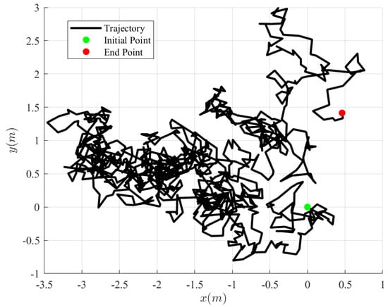 In Equation (18), represents a process with Gaussian distribution. Figure 4 illustrates a 10-s standard Brownian process with a standard deviation .