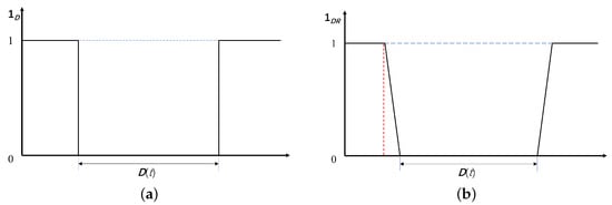 Usually, the smoothing factor is set related to the grid size of the state space. The origin and regularization of the indicator function are shown in Figure 5a,b, respectively.