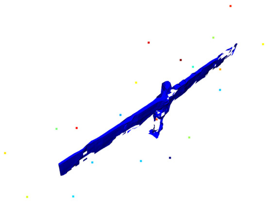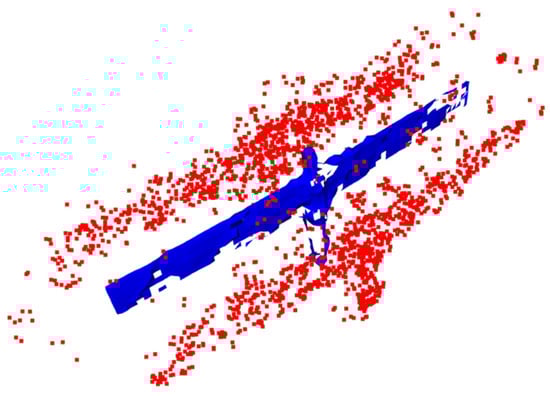Finally, the filtered displaced points are visualized along with the three-dimensional mesh using the Open3D library. The displaced points are shown in red, allowing for the clear and prominent visualization of the filtered points in relation to the mesh.