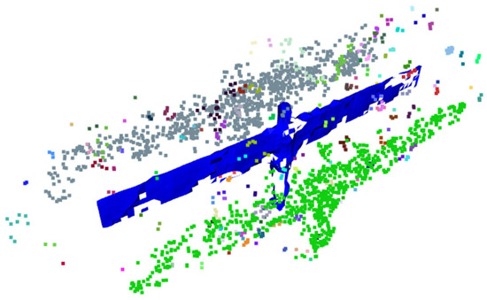 A random color is assigned to each cluster resulting from the second clustering, and a new point cloud is created for each cluster, facilitating their visualization and analysis. After the second clustering, the centroid for each cluster is recalculated, providing a representative point for each grouping (see Figure 20).