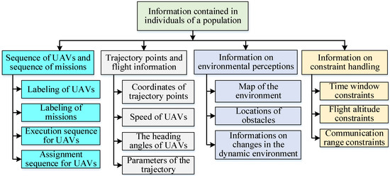 Figure 6 presents the individual expressions of UMP populations based on CMOEAs. Currently, the individual expressions of a population are usually classified into the following categories: UAV and mission sequences, trajectory points and flight information, environmental information, and constraint processing information.