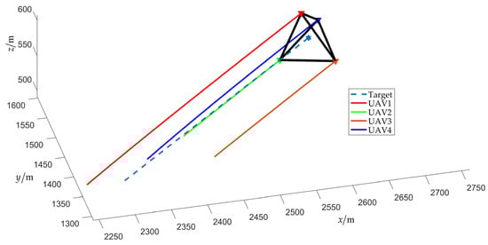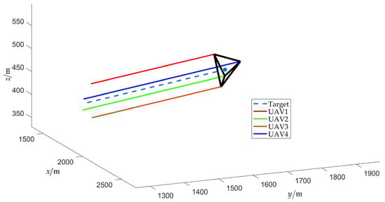 In (15), introduces a feedback term about the relative distance between the UAV and the target, serving solely as an attractive term to drive the UAVs towards the target, rather than directing them to converge to the target’s position. The collision avoidance term in Section 3.2.2 ensures that the relative distance between each UAV is automatically maintained, thus guaranteeing the existence of the convex hull and enabling the swarm to fence the target.