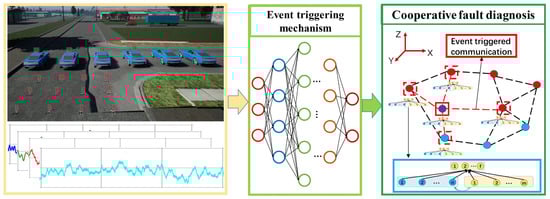 The event-triggered mechanism applied to the fault diagnosis of heterogeneous unmanned systems ensures that the fault diagnosis process and data exchange occur only when the system detects a potential failure (for example, a sudden decrease in the flight altitude of a drone or the abnormal speed of an unmanned vehicle). This approach reduces wireless communication overhead, making the event-triggered fault diagnosis method more efficient in saving communication resources compared to the periodic fault diagnosis solution.