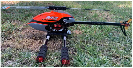 The present manuscript focuses on the hover flight of a mini helicopter with a virtual swashplate depicted in Figure 1 and the experimental results showing the performance of the robust control algorithms during outdoor flights. The main rotor tilts the thrust vector through torque modulation and hinged blades. The tail rotor compensates for the reactive torque of the main rotor. Torque modulation and slanted hinges at the hub of the propellers generate the change in the angle of attack and therefore the inclination of the thrust vector. Sensors like an inertial measurement unit (IMU), Global Positioning System (GPS), and barometer have been used on autopilot to obtain the helicopter attitude and position.