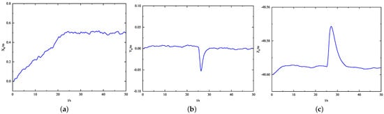 Position curves of TOCCO-FSS during tree-obstacle cutting. (a) X-axis position curve during tree-cutting operation. (b) Y-axis position curve during tree-cutting operation. (c) Z-axis position curve during tree-cutting operation.