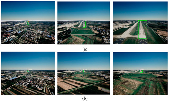 For runway landmark detection, traditional methods use Sobel and Hough Transform (HT) operators to extract image edges, or calculate results using geometric information such as vanishing points. These methods then construct multiple triangles from the two long sides and the bottom edge of a white rectangle for visual navigation. However, such methods only perform well when the aircraft is near one end of the runway and under optimal lighting conditions [5,6].