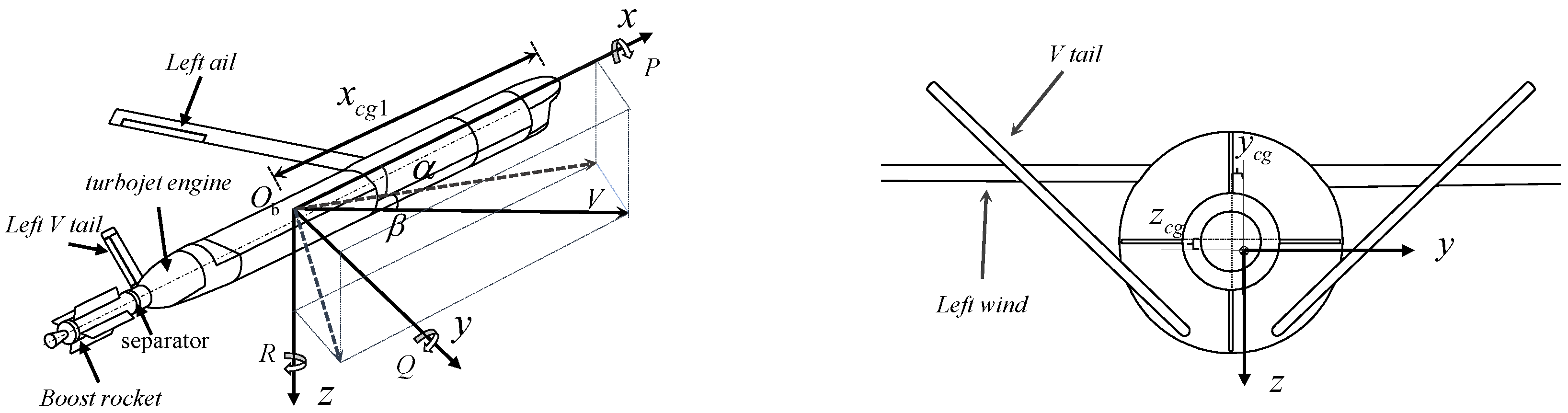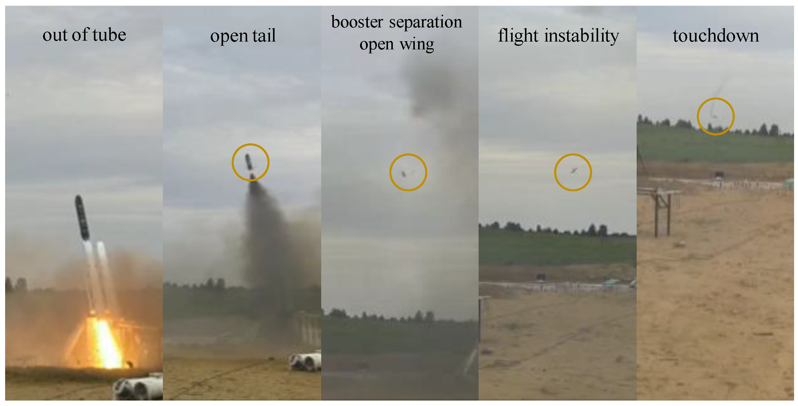 - Cheng, H.; Shi, Q.; Wang, H.; Shan, W.; Zeng, T. Flight Dynamics Modeling and Stability Analysis of a Tube-Launched Tandem Wing Aerial Vehicle during the Deploying Process. Proc. Inst. Mech. Eng. Part G J. Aerosp. Eng. 2022, 236, 262–280. [Google Scholar] [CrossRef]