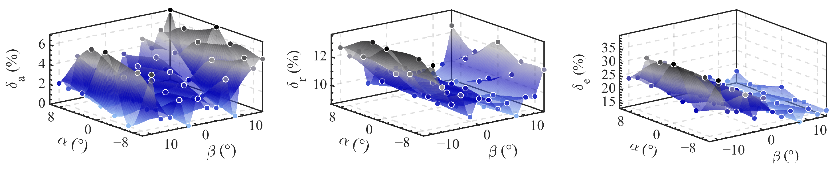 - Grant, D.T.; Abdulrahim, M.; Lind, R. Flight Dynamics of a Morphing Aircraft Utilizing Independent Multiple-Joint Wing Sweep. Int. J. Micro Air Veh. 2010, 2, 91–106. [Google Scholar] [CrossRef]