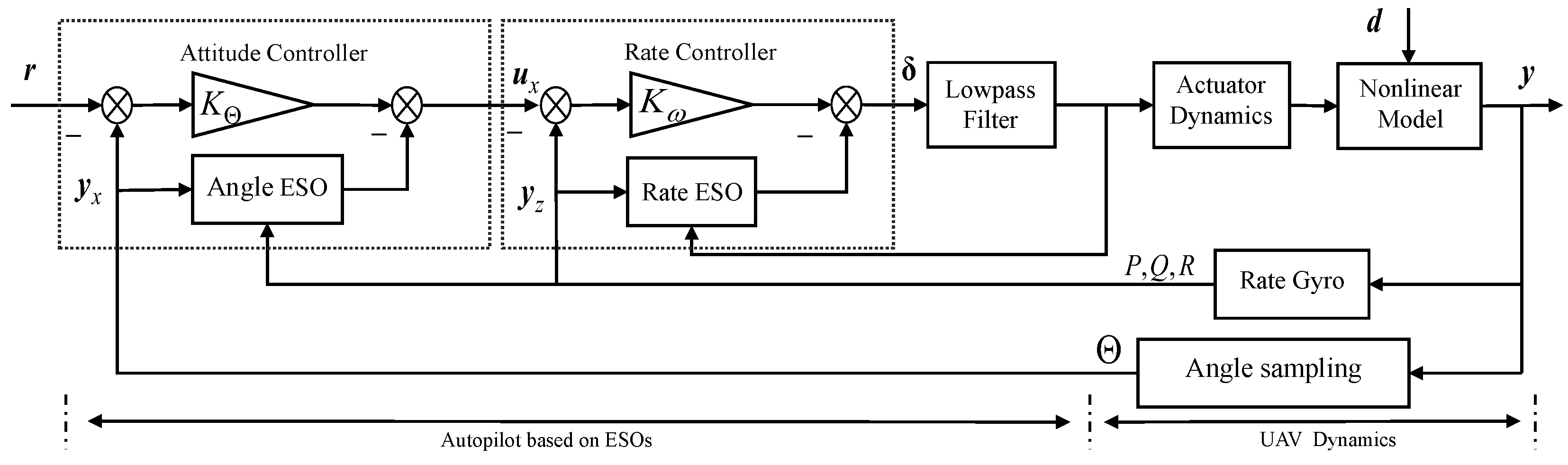 - An autopilot is designed for the UAVs based on the ESO disturbance observer. We prove the boundedness of the control error using Lyapunov stability theory and provide an upper bound estimate for the error.