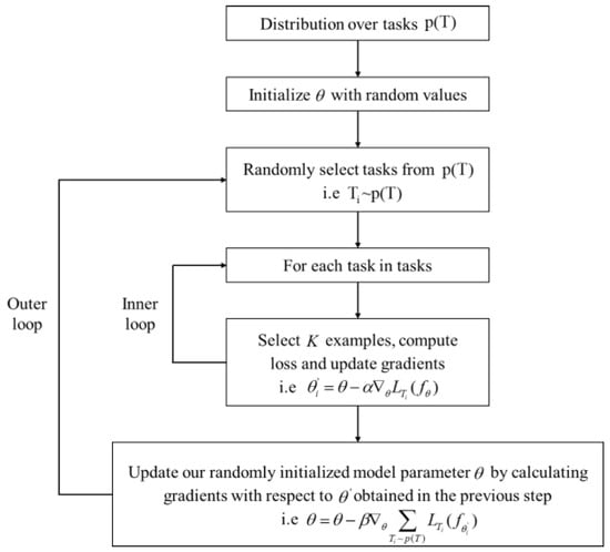 - Outer loop: The meta-test set is utilized to minimize the loss function based on the parameters obtained from the inner loop. This process aims to derive an optimal set of initialization parameters , which enhance the model’s ability to quickly adapt to new tasks.