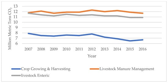 - California Department of Food and Agriculture. California Greenhouse Gas Emissions for 2000 to 2020 Trends of Emissions and Other Indicators. Available online: https://ww2.arb.ca.gov/sites/default/files/classic/cc/inventory/2000-2020_ghg_inventory_trends.pdf (accessed on 26 October 2022).