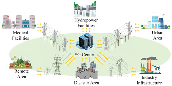 As Internet of Things (IoT) technology advances, its integration into industrial systems has grown increasingly prevalent. These applications span a wide array of sectors, including energy management, traffic monitoring, environmental governance, and smart healthcare [1,2]. Concurrently, the trend toward large-scale, collaborative operations among nodes heralds a new era in network development. The smart grid (SG), a pivotal IoT application model within industrial infrastructure, serves as a critical hub for power generation and distribution to various sectors and households [3]. Equipped with advanced communication and computing technologies, the SG enhances the efficiency, controllability, and reliability of both data and electricity transmission [4,5]. According to statistics from Adarsh Krishnan, the global count of smart meters in SG had reached 1.06 billion by the end of 2023. Projections indicate that this number will surpass 1.75 billion by 2030, exhibiting a compound annual growth rate (CAGR) of 6% [6]. A typical application scenario diagram of SG is shown in Figure 1.