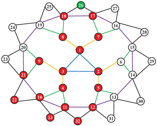 The ring topology of the simulation test [46]. The green node represents the victim node.