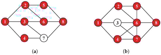 For the purpose of testing and comparison, we initially utilized topology diagrams that have previously been tested for DDoS tracking, specifically the tree topology and ring topology [45,46,55]. Both topologies are illustrated in Figure 4 and Figure 5. Additionally, to facilitate comparison with the results from other research teams, we abstracted the topology provided by H-C. Lin et al. for DDoS tracking into the connection relationships shown in parts (a) and (b) of Figure 6 [56]. Consequently, we have a total of four topologies for testing in this section.