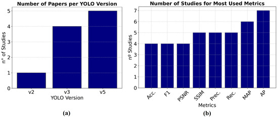 Thus, we can address the primary research question as follows: Overall, studies have developed or modified GANs for super-resolution, with the majority employing models trained from scratch using specific datasets. Following this training, the algorithm is applied to the target images, with object identification conducted before and after, aiming to evaluate comparisons between the GAN algorithms used and their similarities, as well as the subsequent detection stage, where some version of YOLO is predominantly applied. Consequently, this entire process can be adapted for image enhancement with targets relevant to SAR, aiming to improve UAV sensors for the rapid and real-time identification of these targets.